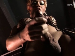 Trans BDSM Queen Bianka in Latex Massaging Her Strong Cock