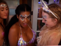 Ebony teen and her BFFs fucked by a BWC