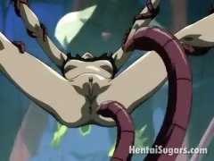 Cutie hentai chick getting tied up and rammed by tentacles