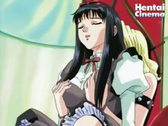 Two kinky hentai slaves fuck their horny master