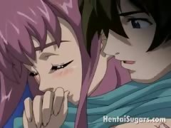 Big meloned hentai minx with pink hair making love with her