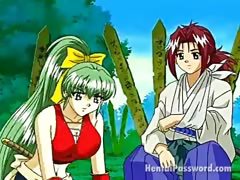 Anime threesome with asian lesbans